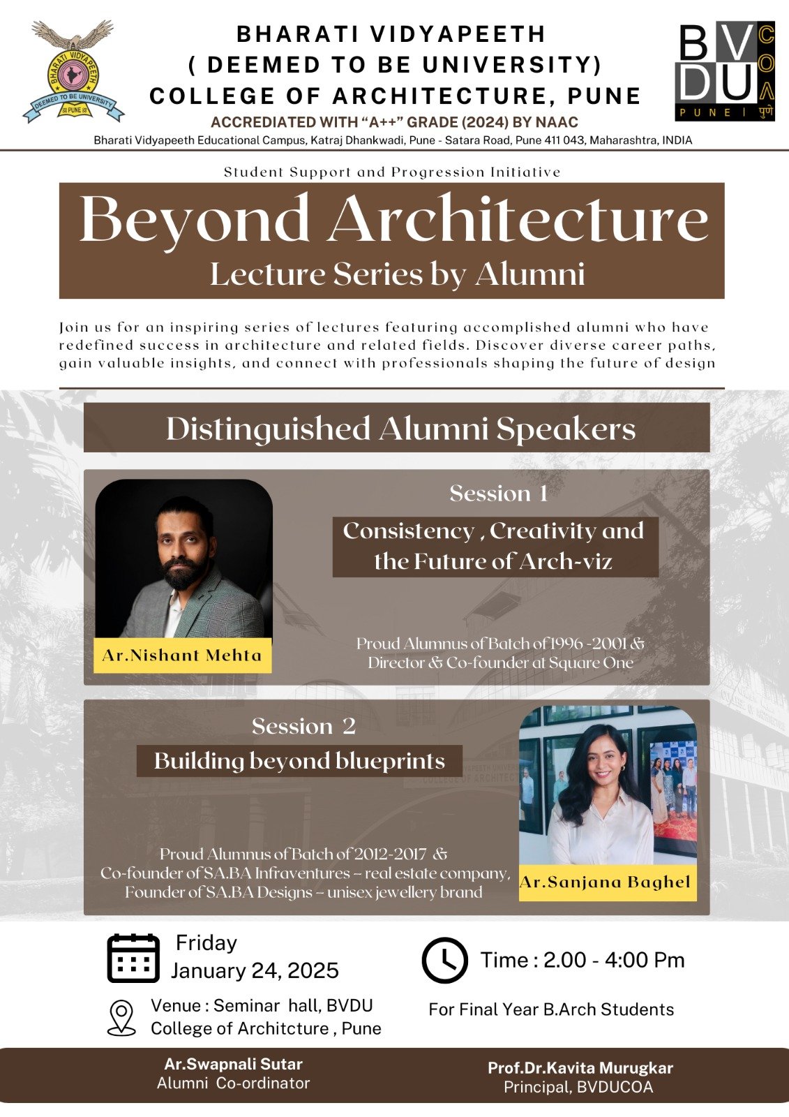 We were thrilled to have hosted the Beyond Architecture Lecture Series by Alumni, which featured inspiring sessions by accomplished alumni of BVDUCOA who have redefined success in architecture and related fields.