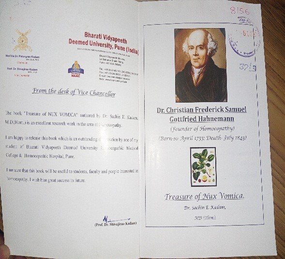 1.Publication of book ‘Treasure of Nux Vomica’.