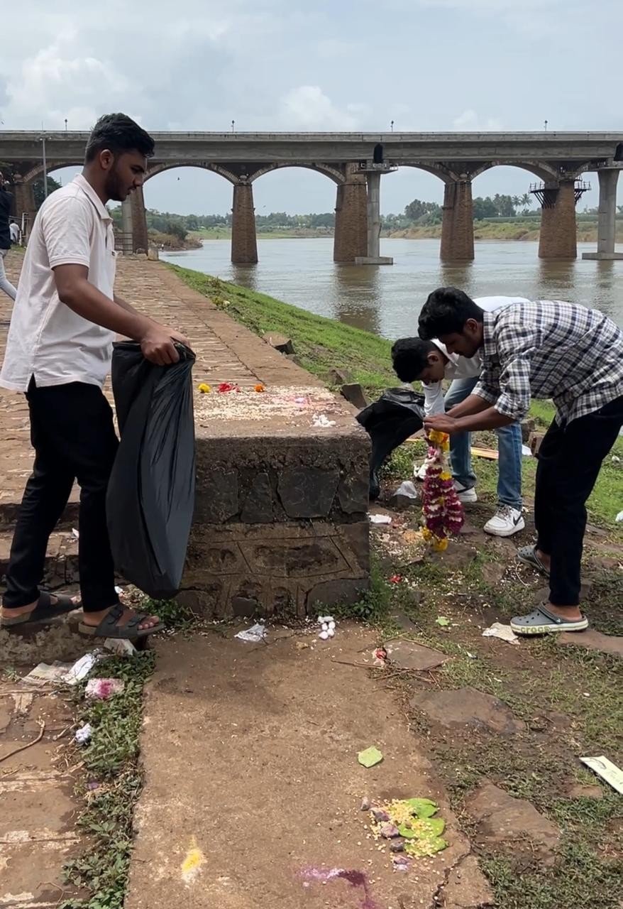 The drive was aimed at restoring the sanctity and cleanliness of the riverfront after large gatherings of devotees had immersed Ganesh idols during the festival. Volunteers from the NSS unit actively participated in removing waste materials, decorations, flowers, and other non-biodegradable items from the ghat area.
