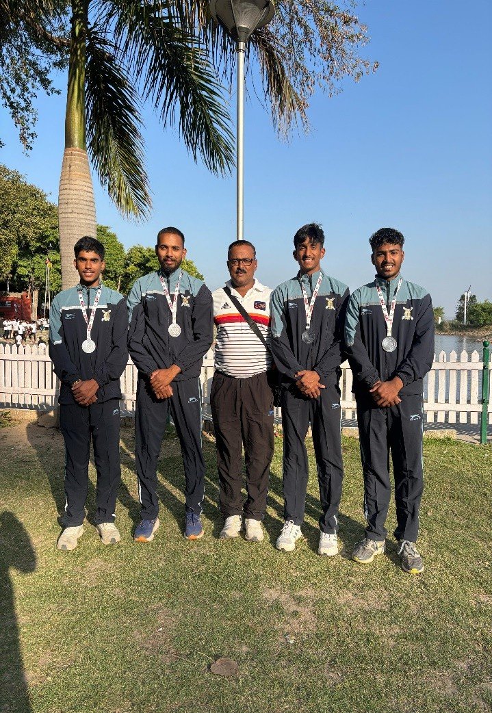 All India Inter University Kayaking, Canoeing, and Dragon Boat Competition (Men & Women) Championship 2024-25 is being organized by Chandigarh University from 11th to 17th March 2025 at Sukhna Lake in Chandigarh. Bharati Vidyapeeth (Deemed to be University), Pune team won a bronze medal in Canoeing (Boating) event on 12th March 2025. The team comprised of four players. Out of these, 3 players Sahil Makandar, Niranjan Patil and Parth Kadam are of IMRDA, Sangli. Director Dr. Pallavi Jamsandekar and Vice Principal Dr. Pratap Desai the students and institute’s sports director Mr. Yogesh Patil on the success.