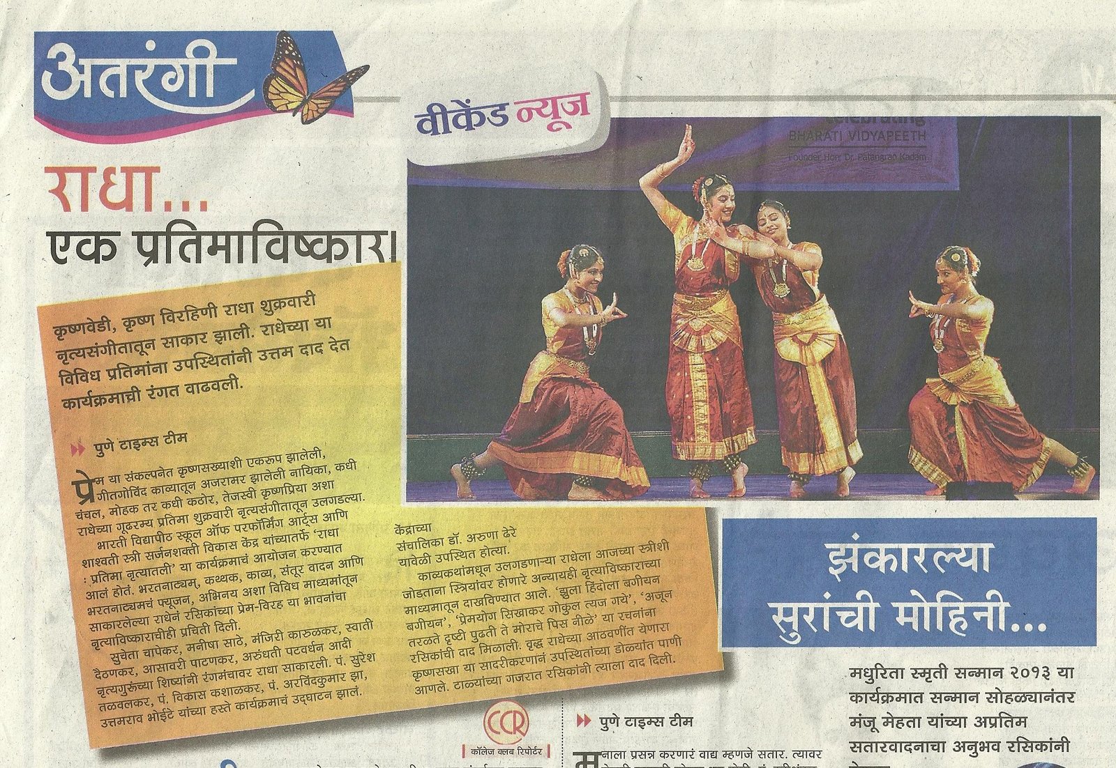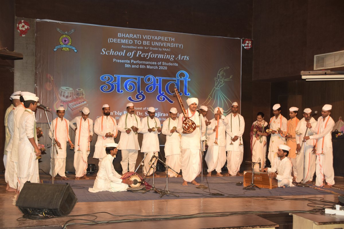 Anubhooti’ an important yearly program, was organized this year for three days. On 1st day presentations of Varakari and Naradiya Kirtan by our Kirtan students created very devotional environment. On 2nd day our Music students presented their art, also various Choreographies were presented by our Dance students. On 3rd day ‘Jawali’ a unique concept in Bharatnatyam dance style was presented by renowned Bharatnatyam dancer and respected Guru in School of Performing Arts Dr. Swati Daithankar. All the performances were highly appreciated by the audience.