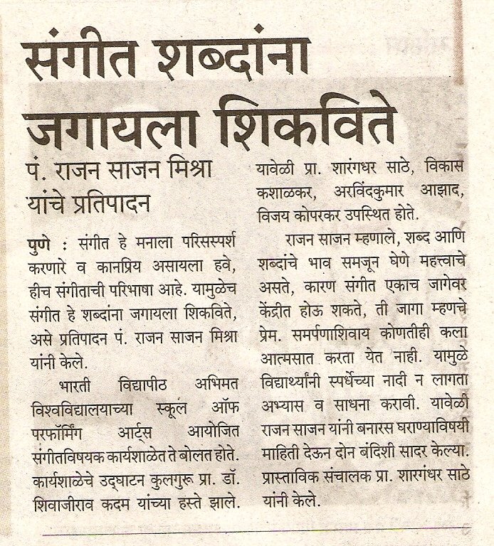 On the occasion of the music workshop organised by Bharati Vidyapeeth's School of Performing Arts Pandit Rajan Sajan Mishra spoke about the importance of single-minded devotion in acheving success in the field of music.
