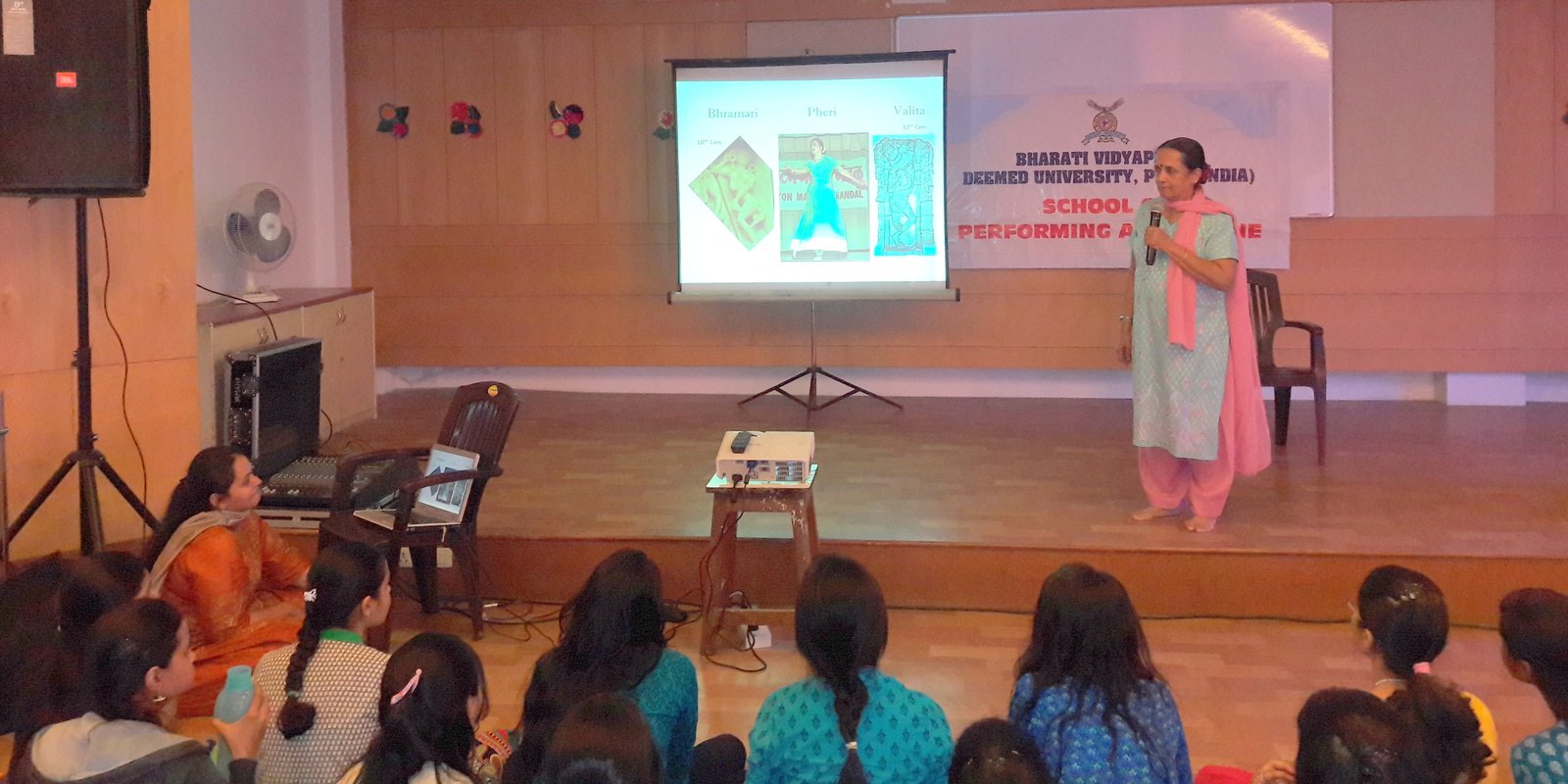 A two day workshop by the world renowned Kathak exponent Pandita Maneesha Sathe, was organized. She unfold the origin of Dance, history of Kathak, Special features of different classical dance styles in a very interesting manner. She spoke at length on the ideal Vastukram of Kathak.