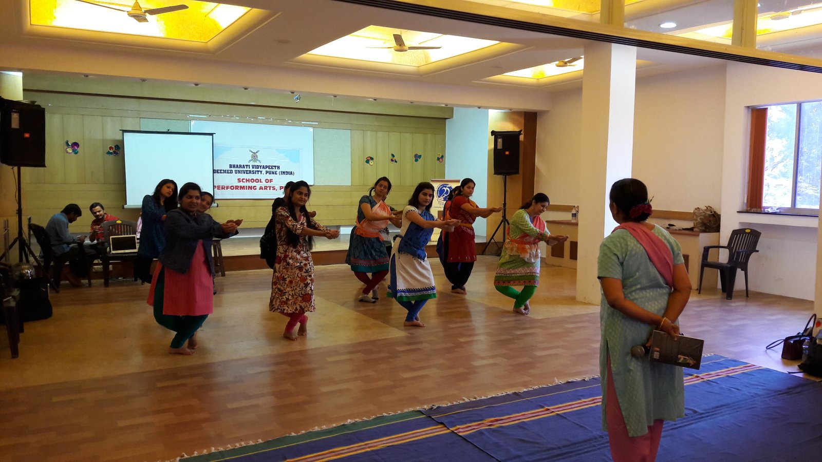 Dr. Vasanth Kiran’s two day’s Kuchipudi workshop commenced with the history of ‘Kuchipudi. Various types of body techniques of Kuchipudi dance were demonstrated in this workshop like – Ushi, Utplavan, Bhramari, etc. Along with traditional nayak – nayika compositions the new compositions were also taught by Dr. Vasanth Kiran. The workshop benefited all the dance students by adding to their dance vocabulary.