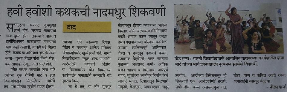 workshop on ‘Aesthetics of pure Dance compositions in Kathak ’, was conducted by renowned Kathak exponent and Guru Pt. Shama Bhate. In a very interesting manner, Shamatai enfolded the technique and principles of Kathak, handed down to her by her Guru. Late Pt. Rohini Bhate and other great Gurus in Kathak.