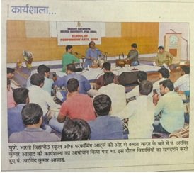 In today’s techno world the field of music offers you wonderful range of opportunities, Applied Music is one of such opportunities. There is lot to study and to know in the field of Applied Music. It is very important for students to understand the concept and fine details of this subject from experienced and successful artistes working in the field. Keeping this in mind, School of Performing Arts had organized a workshop on the same subject by Shri. KoushalInamdar, a well-known figure in Applied Music. He expatiated on advertisement, Cine Music, Background Score and their scope. It set a bench mark for an ideal workshop.
