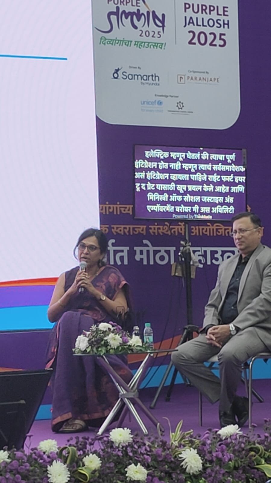 Our Principal, Dr. Kavita Murugkar was also invited as a panelist in the same event sharing stage with Mr. Shashank Paranjpe, Paranjpe Builders and was felicitated at the hands of DEPWD Chief GOI Mr. Rajesh Agarwal for the contribution to Divyang Foundation and Disability Sector.