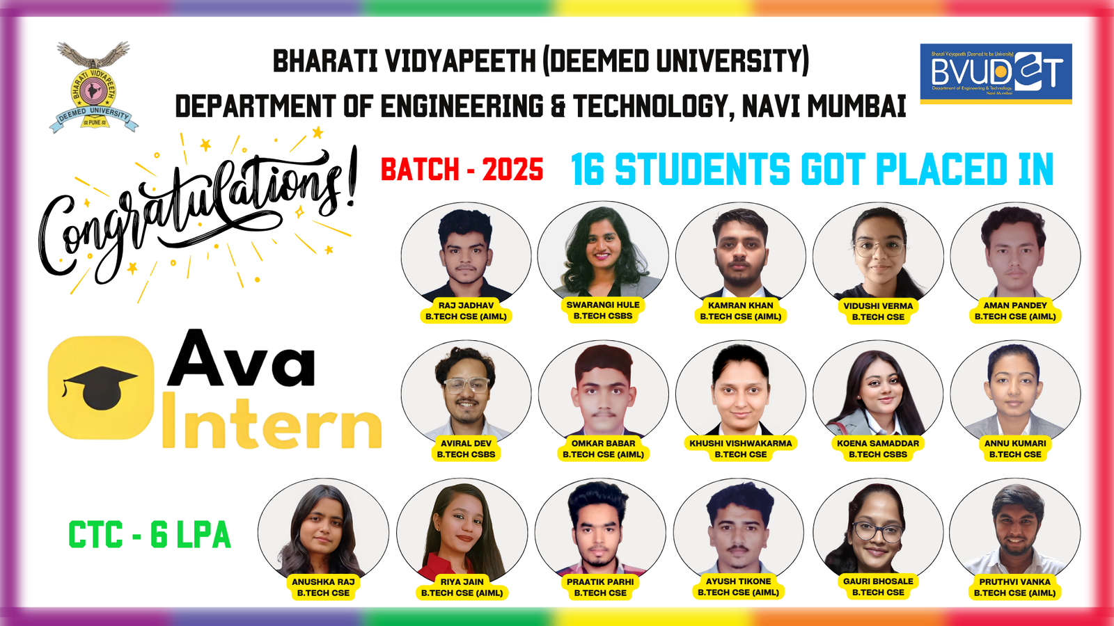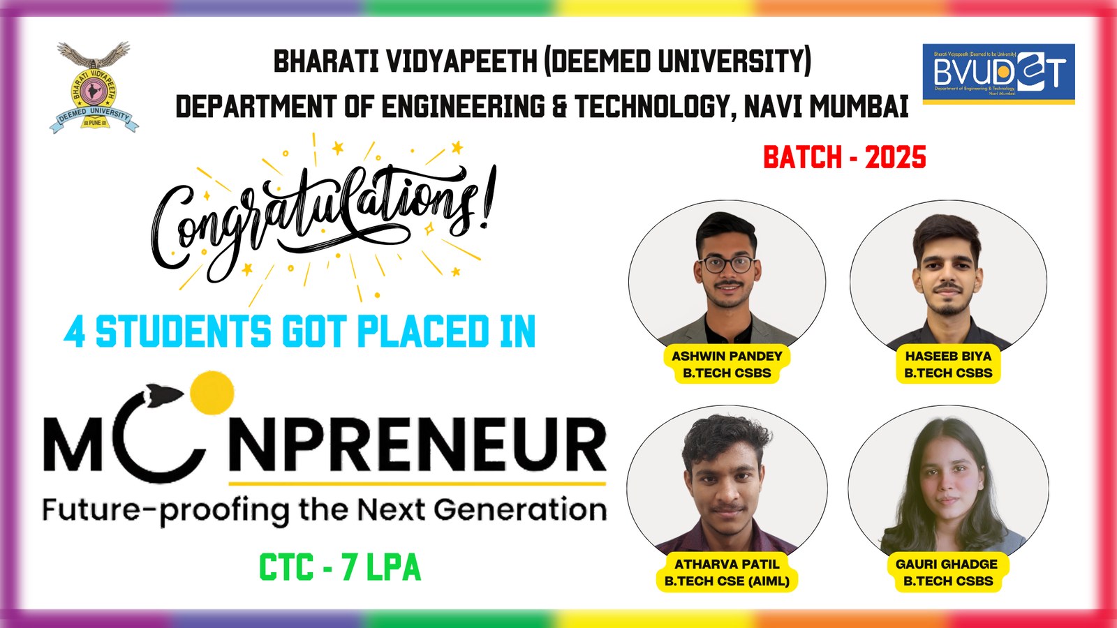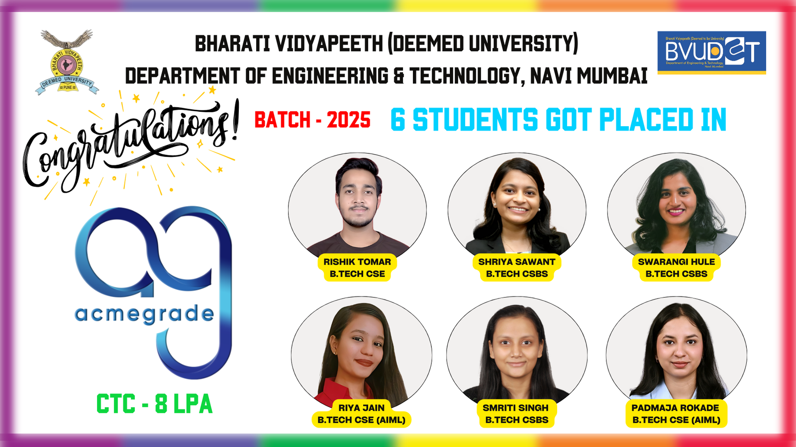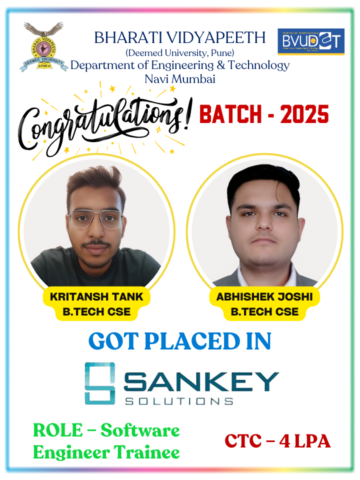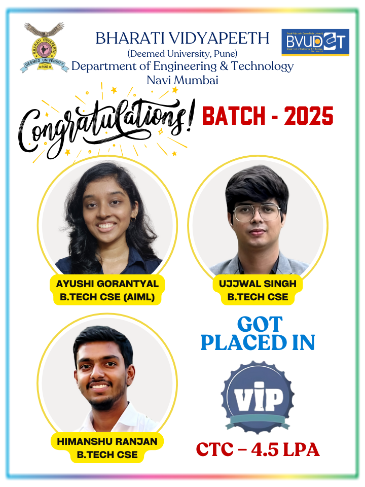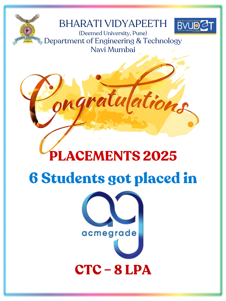 Department of Engineering and Technology of BV(DU) started off campus of Bharati Vidyapeeth (Deemed to be University) of Engineering at Navi Mumbai.