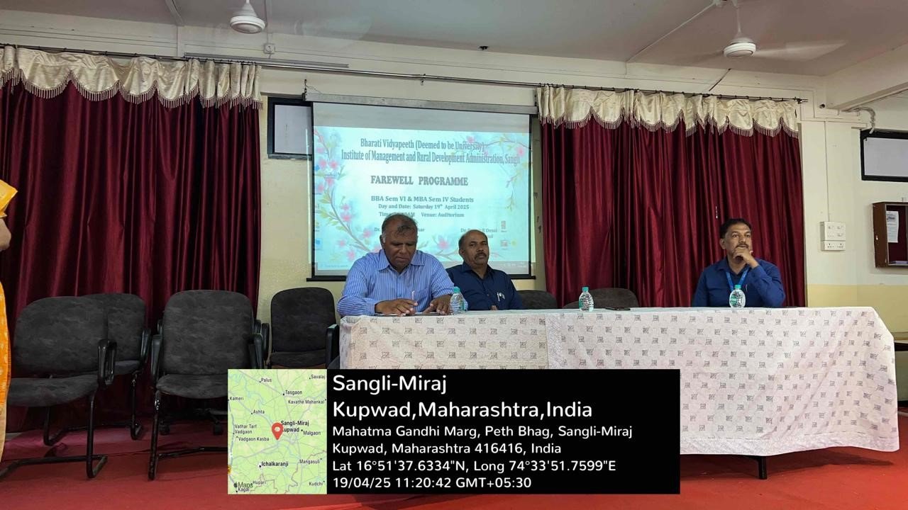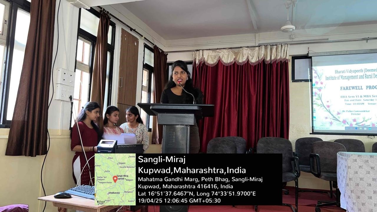 The institute organized a farewell party for the final year students of MBA and BBA on Saturday, 19th April 2024. Director Pallavi Jamsandekar, Vice Principal Dr. Pratap Desai, Head of Computer Applications department Dr. Rajendra Pujari and Head of Management Studies department Prof. Dexter Woodward welcomed all the final year students.