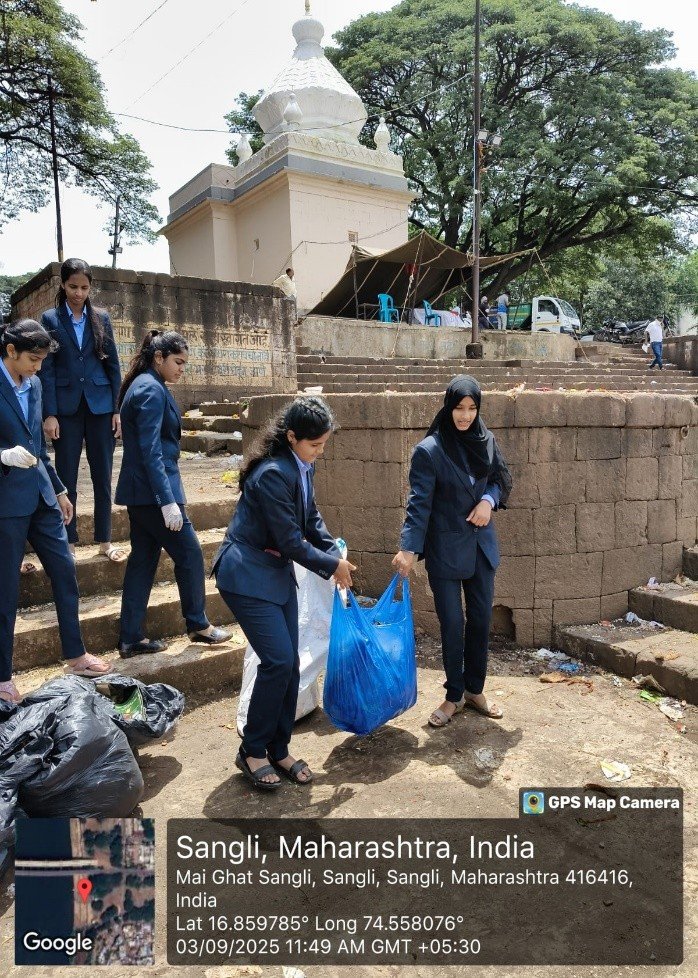 The drive was aimed at restoring the sanctity and cleanliness of the riverfront after large gatherings of devotees had immersed Ganesh idols during the festival. Volunteers from the NSS unit actively participated in removing waste materials, decorations, flowers, and other non-biodegradable items from the ghat area.