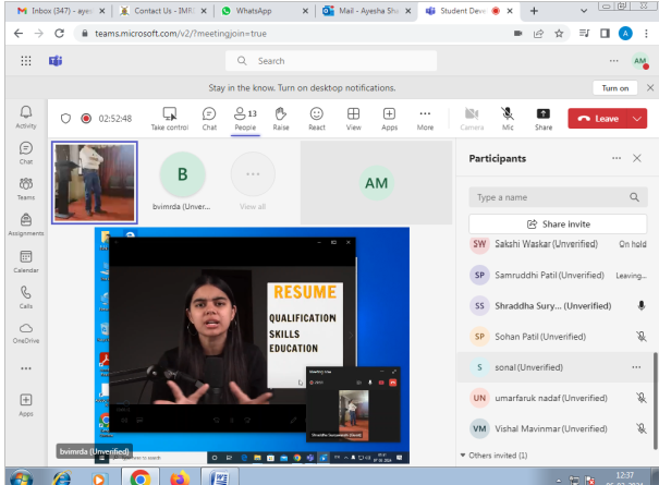 The institute is organizing a mega Job Fair on Monday, 11th March 2024. In order to improve students’ soft skills a full day workshop on “Importance of Soft Skills for Career Improvisation” was organized on Thursday, 7th March 2024. Mr. Ajay Shah, former faculty member, Dr. J.J. Magdum College of Engineering, Jaysingpur who worked as Central Training Coordinator for Soft Skills and quantitative aptitude was the facilitator for the workshop. Director Dr. Pallavi Jamsandekar welcomed and felicitated Mr. Shah. Vice Principal Dr. Pratap Desai explained the purpose of the workshop. In the whole day workshop Mr. Shah guided the students on interview attendance, resume writing and communication skills. The workshop was conducted on both offline and online mode. IMRDA, Sangli students attended the workshop in the offline mode. Students from other institutes and colleges of Sangli city, Tasgaon, Ashta, Vita and other parts of Sangli district attended the workshop in an online mode through Microsoft Teams. Head of Computer Application department Dr. Rajendra Pujari gave vote of thanks. Vice Principal Dr. Pratap Desai, Dr. Amarja Nargunde and Dr. Ayesha Mujawar worked as event coordinators.