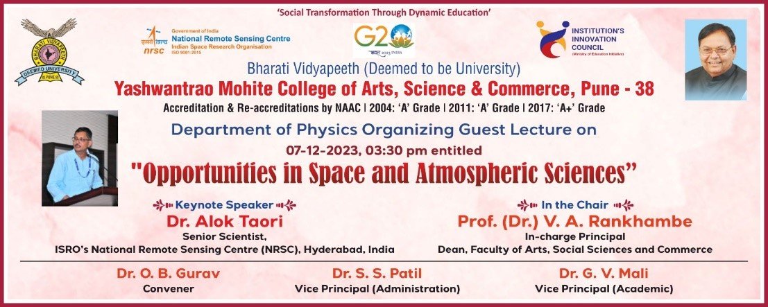 The Department of Physics has organized guest lecture on “Opportunities in Space and Atmospheric