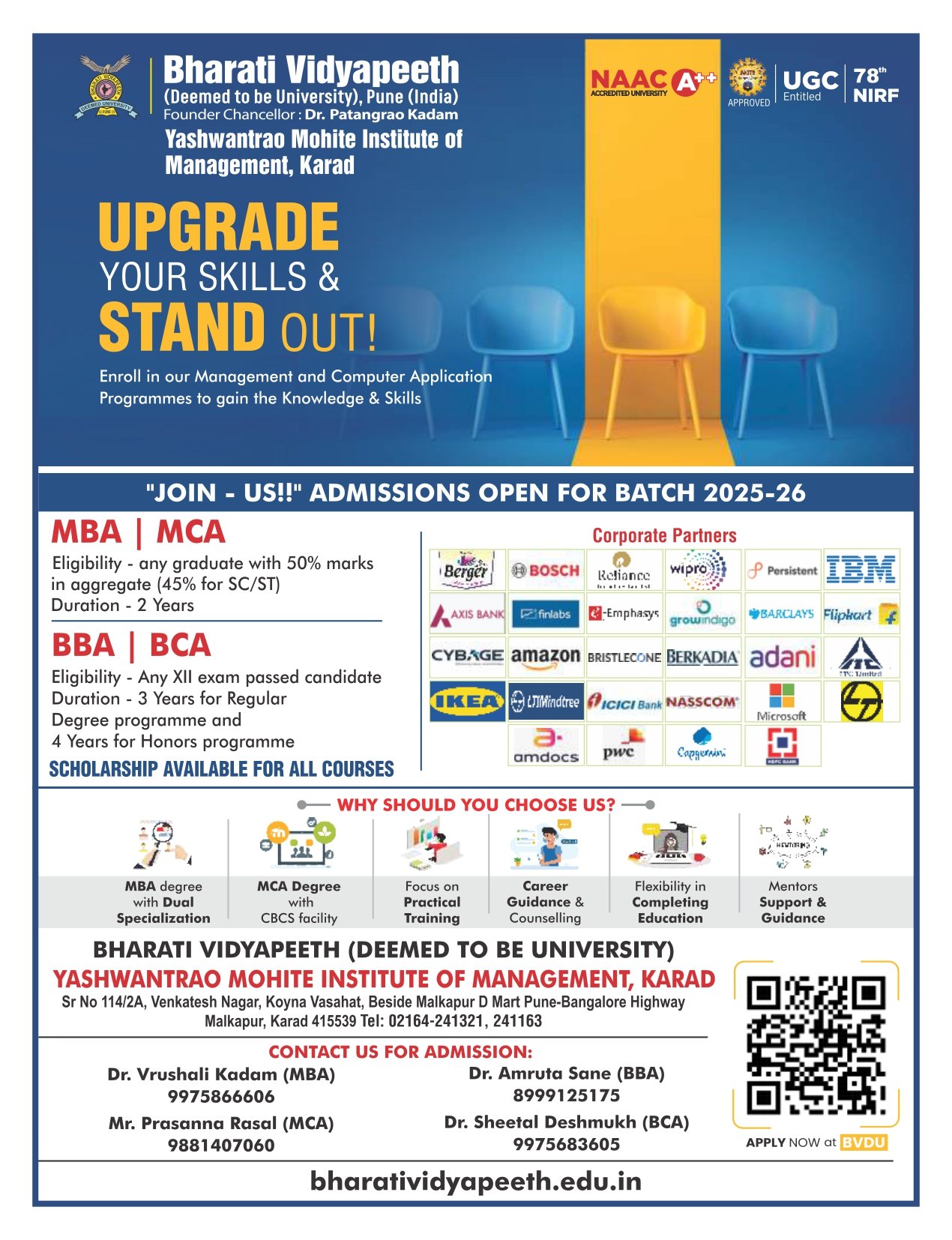 Established in 1994, Yashwantrao Mohite Institute of Management, Karad is one of the constituent units of BVDU, Pune.